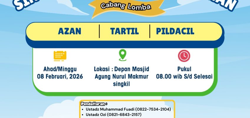 Kegiatan perlombaan antar TPA se Kecamatan Singkil akan di laksanakan pada hari Ahad, 08/02/2026.