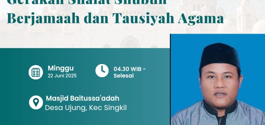 DPD Badan Komunikasi Pemuda Remaja Masjid Indonesia ( BKPRMI ) Kabupaten Aceh Singkil Bersama Dewan Masjid Indonesia Kabupaten Aceh Singkil akan melakukan kunjungan Safari Shubuh ke Masjid Baitussaadah Kampung Ujung Kecamatan Singkil Kab. Aceh Singkil dalam rangka Gerakan Shubuh Berjamaah, untuk itu kami mohon kepada Kaum Muslimin mari kita hadiri gerakan Shubuh berjamaah sekaligus Tausiyah yang di laksanakan pada